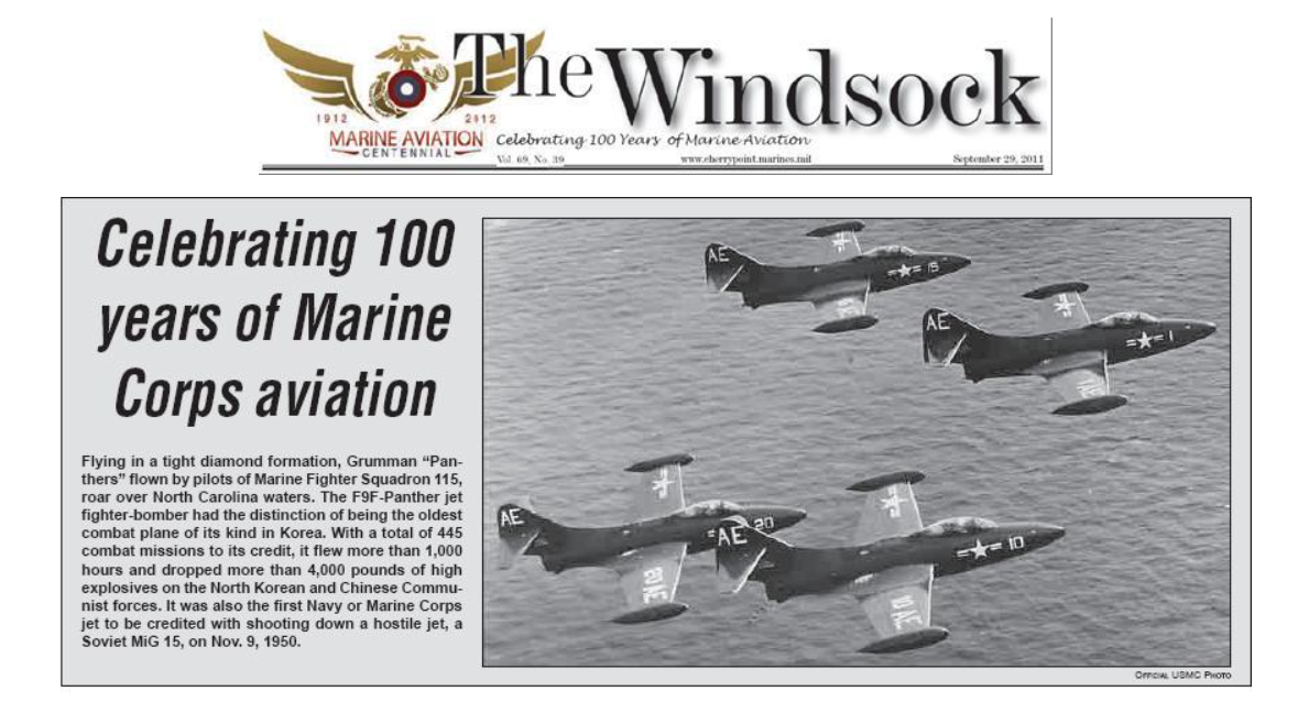 And for those who picked up a copy of the air station newspaper, The Windsock, how appropriate to see this item highlighting the VMF-115 Panther jets of yesteryear.