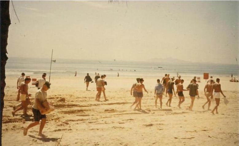 One of the bright spots at Da Nang was China Beach. Whether it was a squadron party or just a break in the non-stop action on the flight line, many troopers list "Going to China Beach" as a favorite place to get away. Again, a Doug Hall photo on top showing the troopers hitting the beach. And the bottom photo of the north end of the beach was sent by Phil Jordan which expresses some of the beach's serenity.